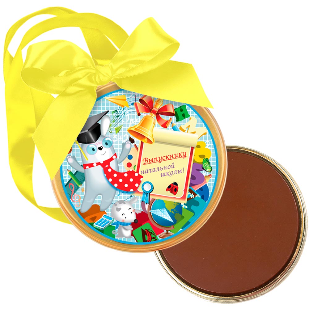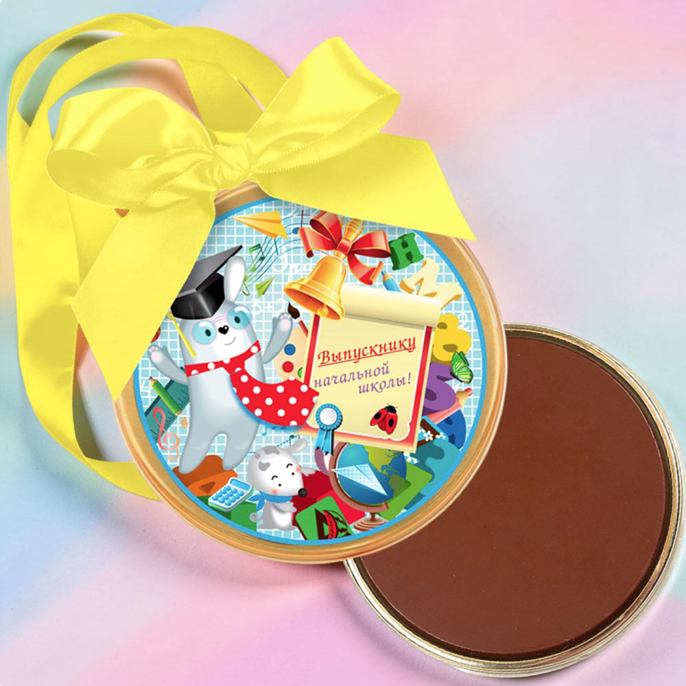 Медаль из молочного шоколада, красивая и вкусная, - отличная награда вашему ребёнку, который закончил начальную школу. Пусть этот день запомнится ему навсегда!